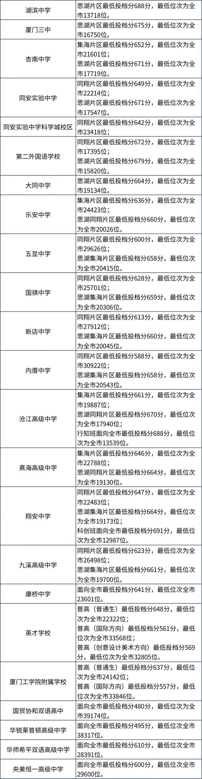 在符合各考試科目等級、綜合素質(zhì)評價畢業(yè)總評、招生片區(qū)等方面條件的前提下,各校普高普通生錄取的最低投檔分數(shù)及全市最低位次如下(點擊圖片放大查看):