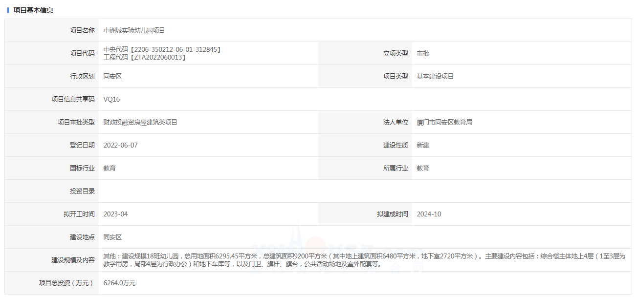 剛剛,中洲城實(shí)驗(yàn)幼兒園項(xiàng)目報(bào)建信息公布。