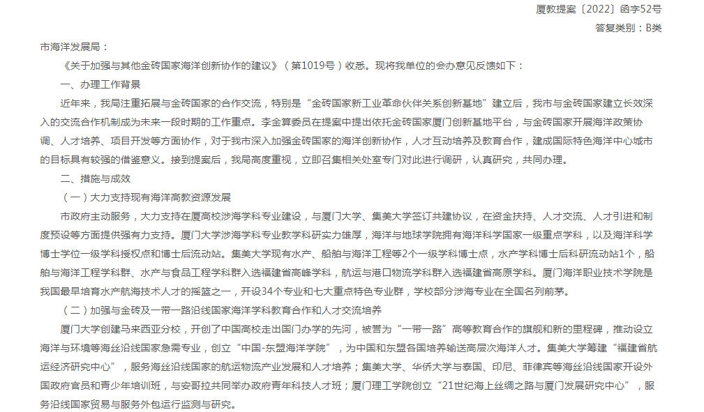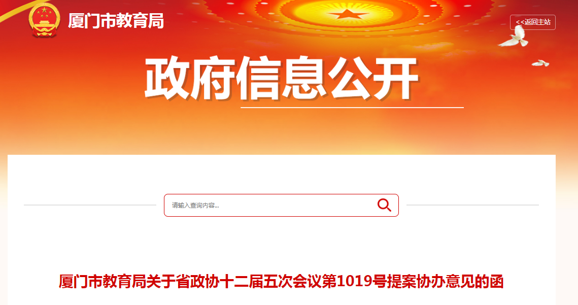 近日,廈門市教育局發(fā)布關(guān)于省政協(xié)十二屆五次會議第1019號提案協(xié)辦意見的函,內(nèi)容滿滿,一起來看看吧~