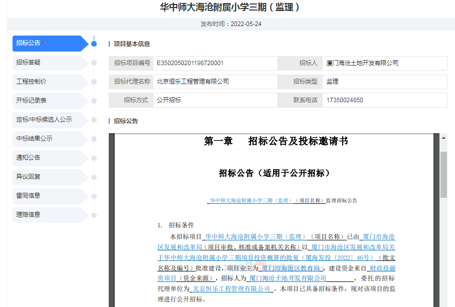 剛剛,華中師大海滄附屬小學(xué)三期(監(jiān)理)招標(biāo)公告發(fā)布。