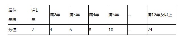 解釋:也就是居住證辦的時間越長分?jǐn)?shù)越高,最高可以累積24分。