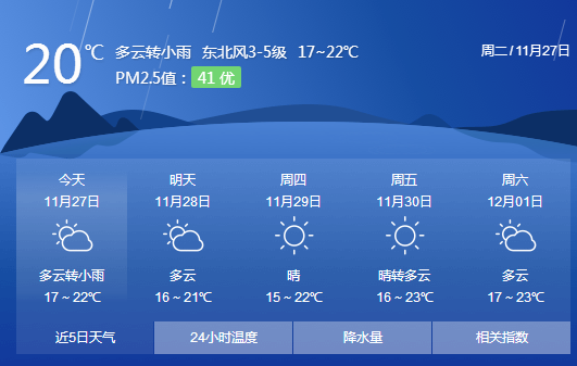 昨日,風(fēng)雨交加,體感比較寒冷,街上不少人穿起了羽絨服。氣象部門預(yù)報(bào),今天開始,氣溫將稍有回升,最高氣溫預(yù)計(jì)回升5℃左右,可達(dá)20℃左右。天氣仍以陰天到多云為主,局部地區(qū)或有陣雨落下。