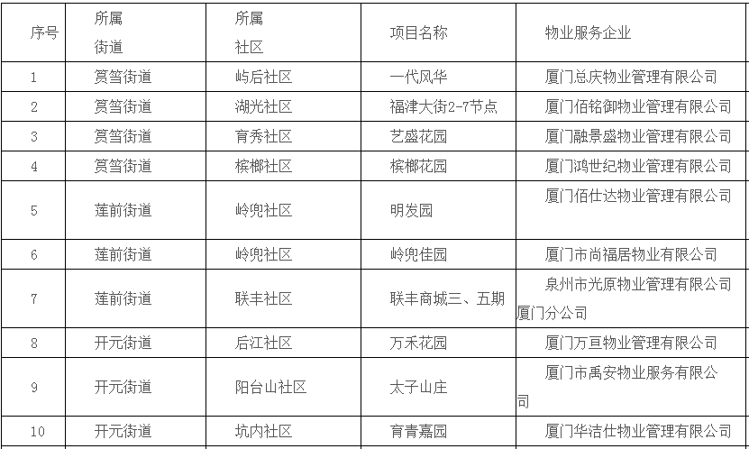 △思明區(qū)住宅物業(yè)服務(wù)項目“紅榜”名單(第一期)