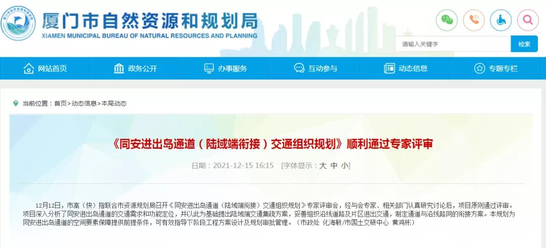 近日,市高(快)指聯(lián)合市資源規(guī)劃局召開《同安進出島通道(陸域端銜接)交通組織規(guī)劃》專家評審會,項目原則通過評審。