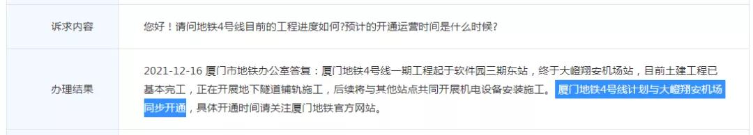 近日,有網(wǎng)友在官方平臺詢問關(guān)于廈門地鐵4號線工程進度及開通時間,對此官方也給予了相關(guān)答復(fù)。