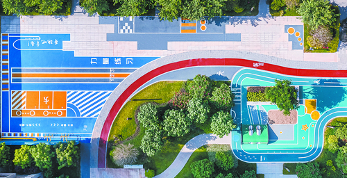 小區(qū)中庭寬敞嶄新的走步道,清爽鮮艷。