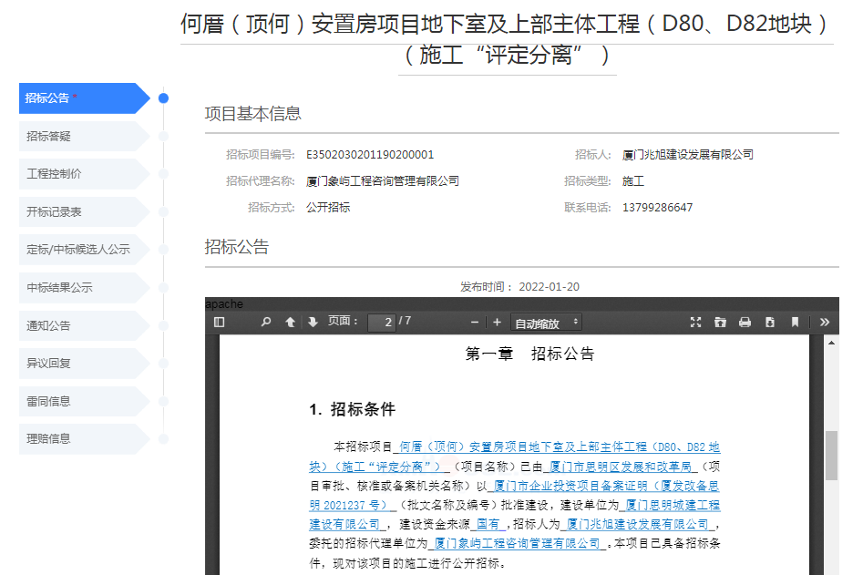 近日,何厝(頂何)安置房項目地下室及上部主體工程(D80、D82地塊)(施工“評定分離”)招標公告發(fā)布。