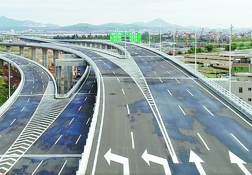 翔安機(jī)場快速路大嶝島段B1標(biāo)上部結(jié)構(gòu)鋪裝完成。(中鐵十七局 供圖)