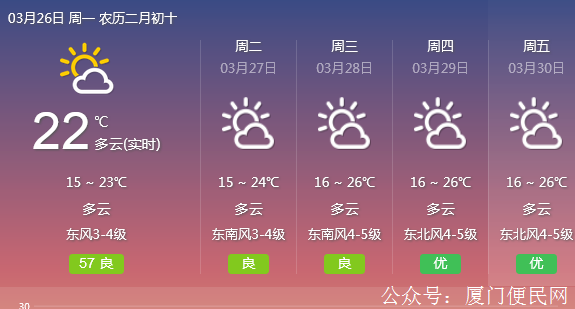• 【廈門(mén)天氣】未來(lái)幾天廈門(mén)氣溫逐日上升