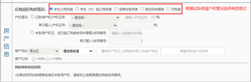 ?。?)本區(qū)戶籍適齡兒童和港澳僑外適齡兒童請(qǐng)根據(jù)實(shí)際房屋產(chǎn)權(quán)情況選擇對(duì)應(yīng)類型進(jìn)行填寫。