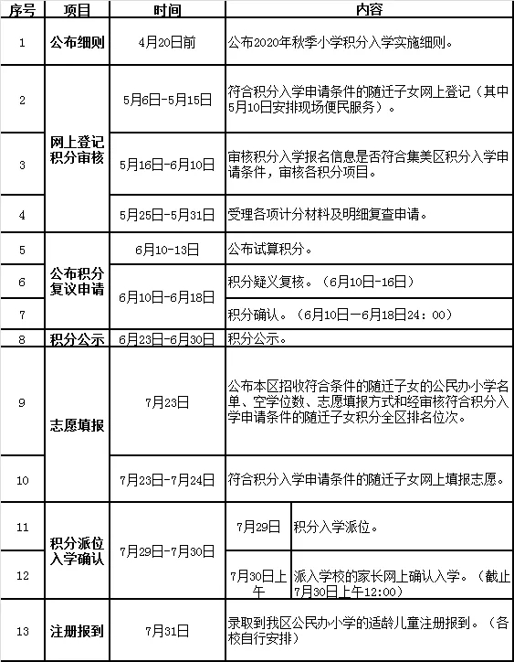 廈門積分入學(xué)開始申報(bào)了,具體時(shí)間安排表如下