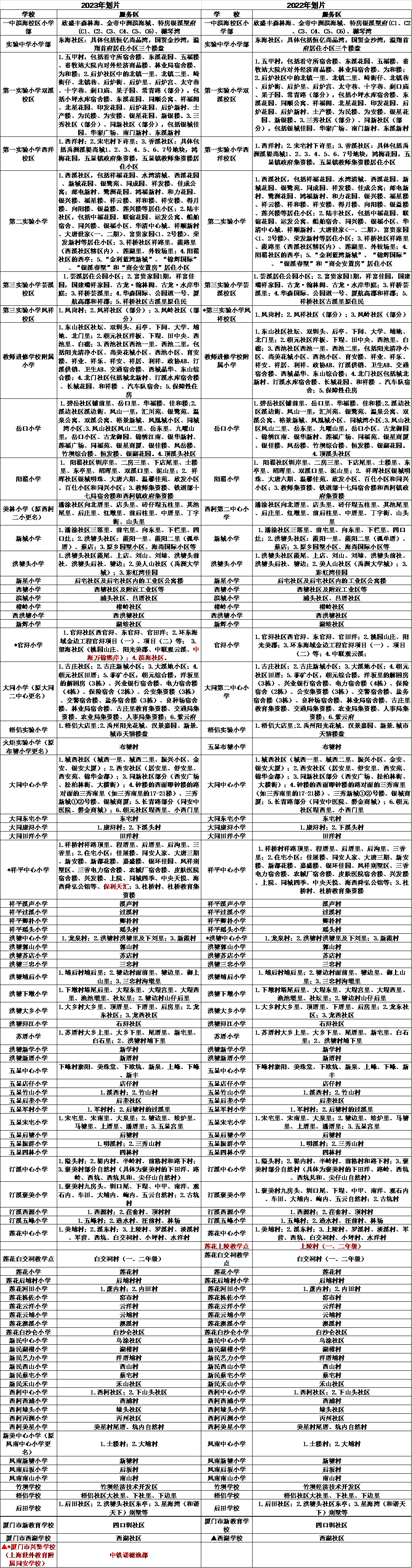 2023年福建省廈門市同安區(qū)小學(xué)劃片出爐。此次同安幼升小的派位有發(fā)生一些變動,小編特也把2022年的劃片整出來,做個對比
