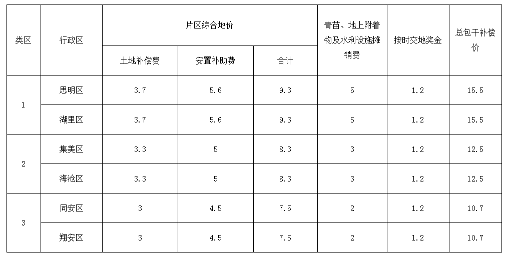 廈門最新征地補償標準 廈門市人民政府關于調整征地補償標準的通知