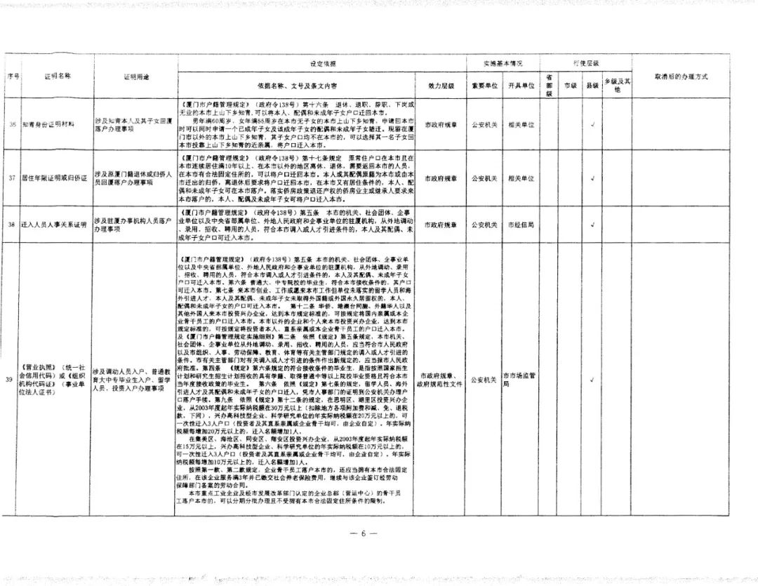 按照“沒有法律法規(guī)規(guī)定的證明事項一律取消”的標(biāo)準(zhǔn),在全面梳理、反復(fù)論證的基礎(chǔ)上,日前我市對外公布取消39項證明事項。