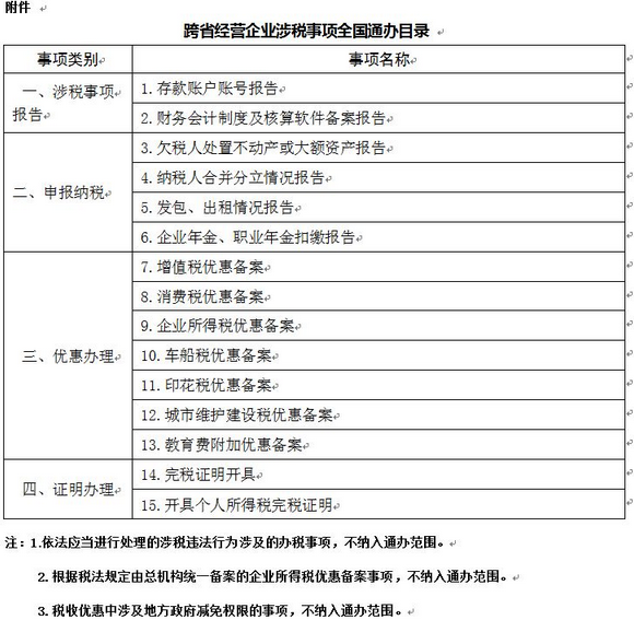 為進(jìn)一步方便納稅人辦稅,按照《國家稅務(wù)總局關(guān)于進(jìn)一步深化稅務(wù)系統(tǒng)“放管服”改革優(yōu)化稅收環(huán)境的若干意見》(稅總發(fā)〔2017〕101號)的工作安排,根據(jù)《國家稅務(wù)總局關(guān)于跨省經(jīng)營企業(yè)涉稅事項(xiàng)全國通辦的通知》(稅總發(fā)〔2017〕102號)要求,落實(shí)好跨省經(jīng)營企業(yè)部分涉稅事項(xiàng)全國通辦工作,現(xiàn)將有關(guān)事項(xiàng)通知如下:
