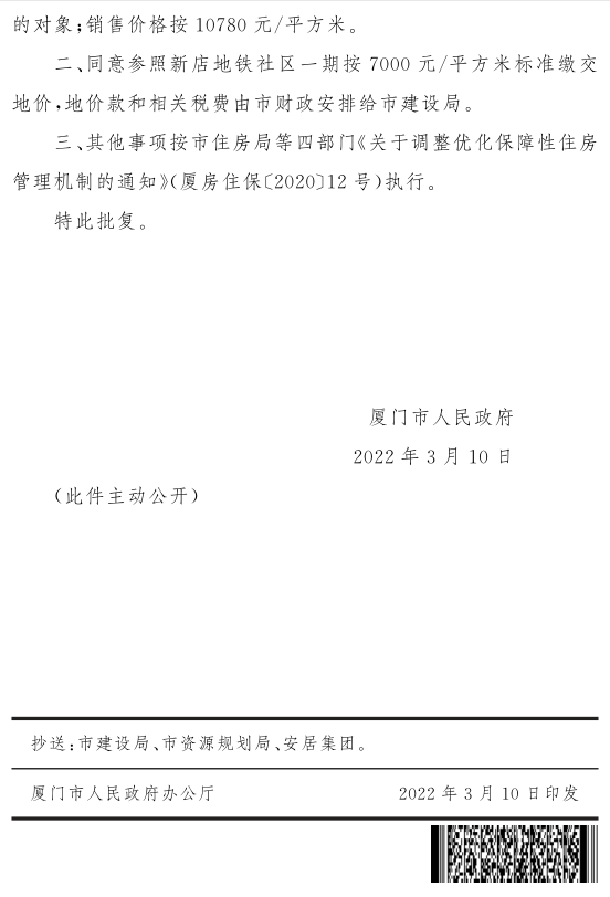近日,廈門市人民政府發(fā)布關(guān)于新店保障房地鐵社區(qū)林前綜合體保障性商品房批量銷售有關(guān)事項(xiàng)的批復(fù)。