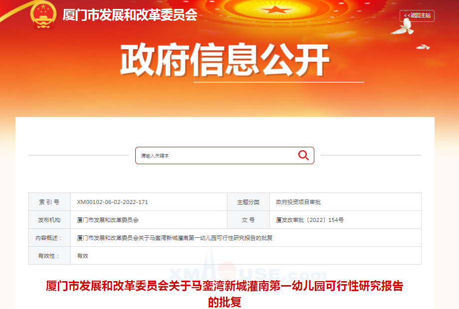 剛剛,廈門市發(fā)展和改革委員會發(fā)布關于馬鑾灣新城灌南第一幼兒園可行性研究報告的批復,同意建設馬鑾灣新城灌南第一幼兒園。