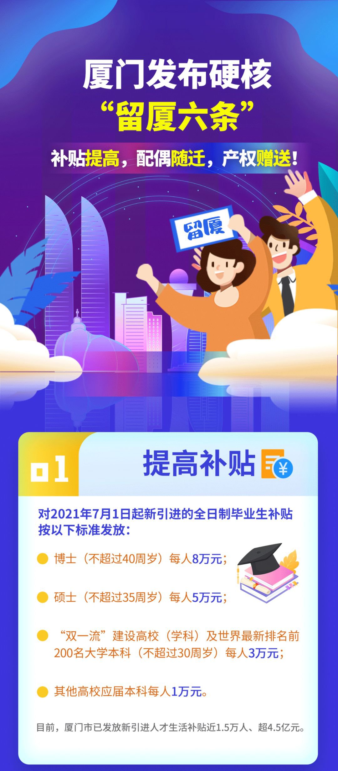 廈門市于2017年就在全國率先出臺(tái)針對(duì)畢業(yè)生群體的補(bǔ)貼政策,著力夯實(shí)城市發(fā)展后勁。近年又隨著經(jīng)濟(jì)社會(huì)發(fā)展需要不斷修訂實(shí)施細(xì)則,無論從補(bǔ)貼力度還是覆蓋廣度,都達(dá)到國內(nèi)同類城市的最高水平,彰顯了廈門以人才引領(lǐng)城市未來發(fā)展的雄心。