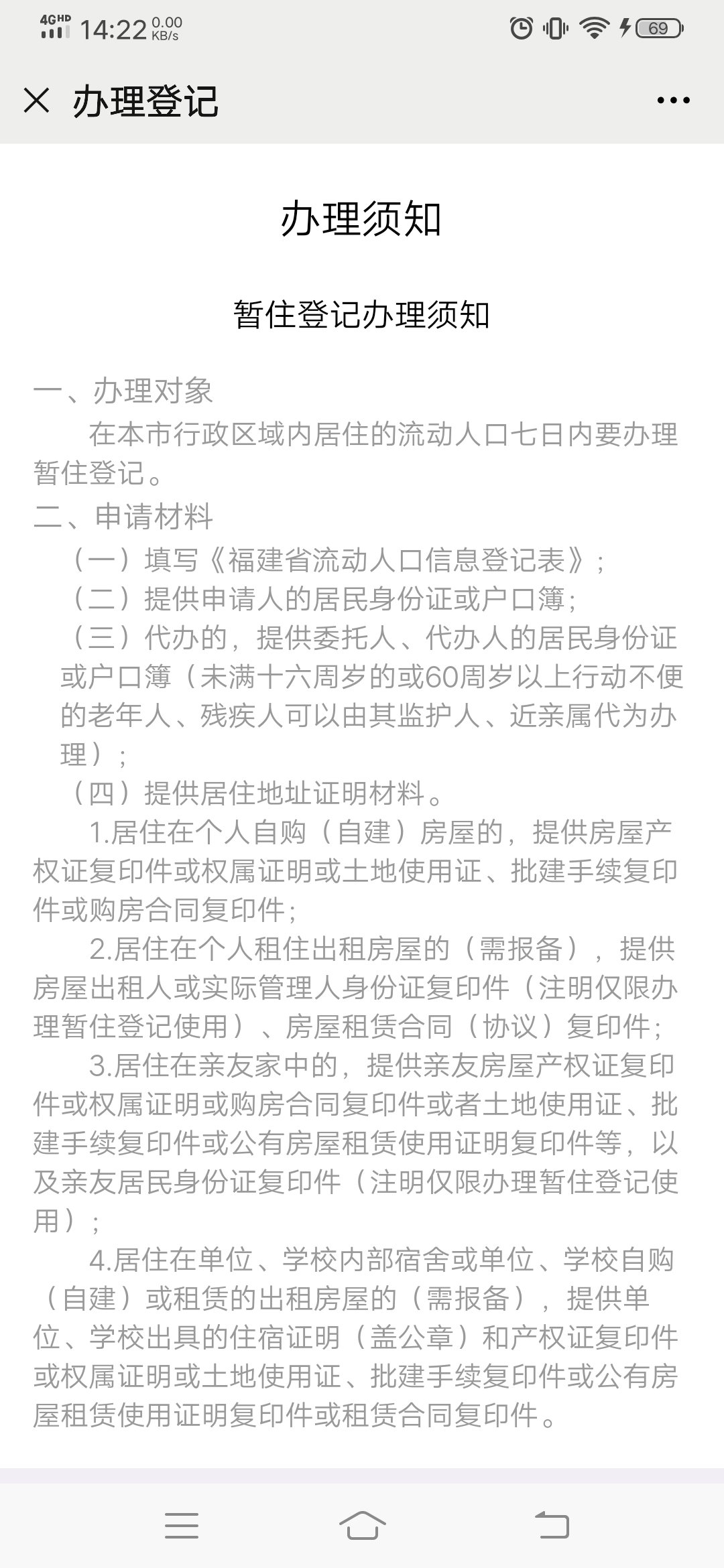 注:根據(jù)《福建省公安機(jī)關(guān)辦理暫住登記和福建省居住證工作規(guī)范》最新要求,居住在直系親屬或親友房屋辦理暫住登記或居住證無須上傳《住宿聲明》,原先因《住宿聲明》審核不通過的群眾,再次提交時(shí)可不需要上傳。