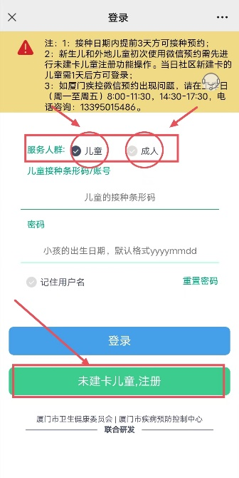 2、未注冊建卡的要先注冊建卡,分為兒童和成人兩類。