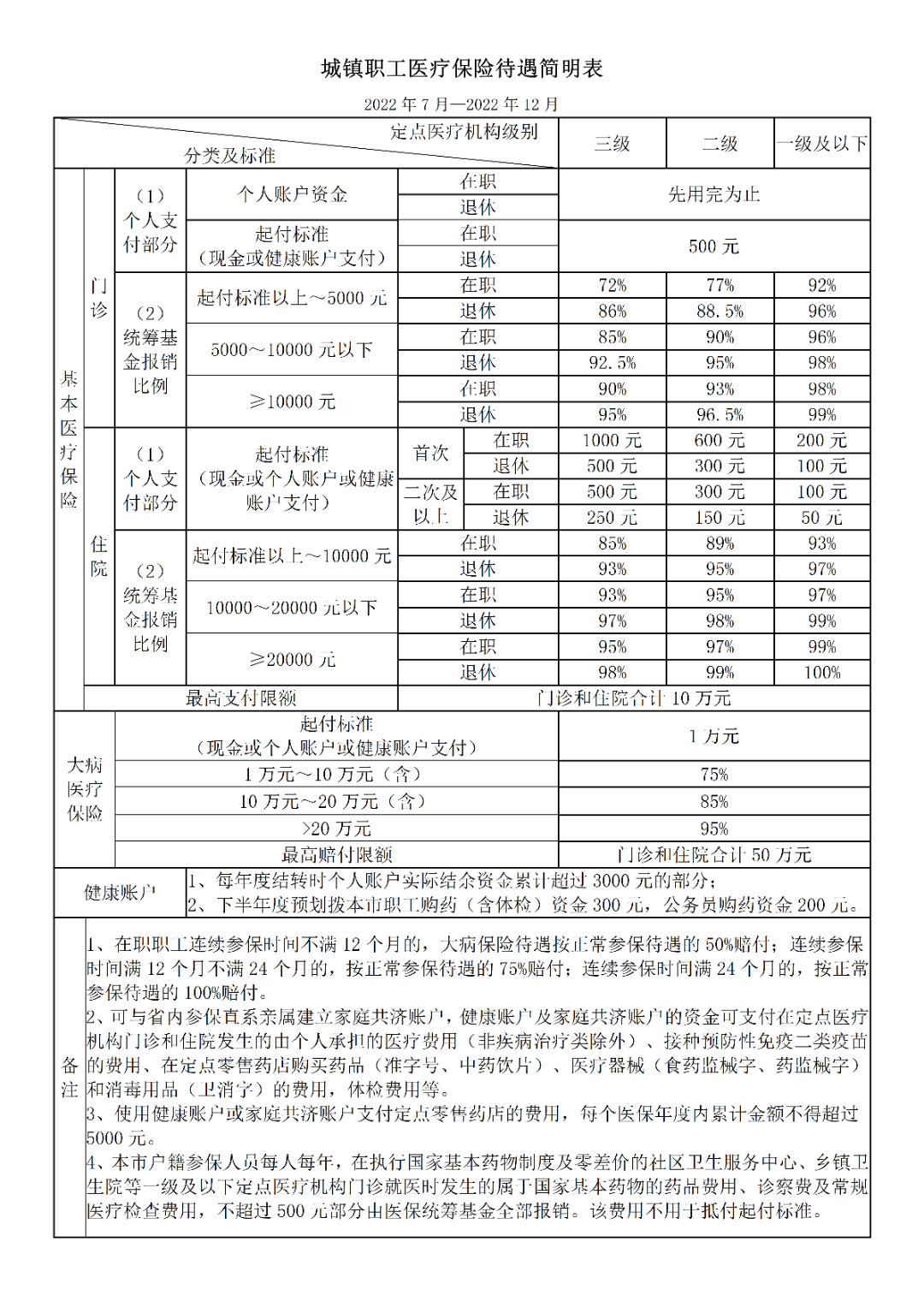 城鎮(zhèn)職工醫(yī)療保險(xiǎn)待遇簡明表