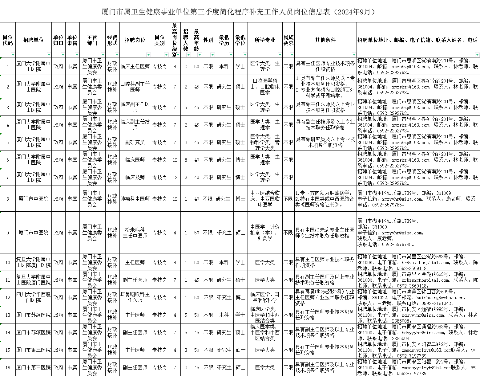 附件:1.廈門市屬衛(wèi)生健康事業(yè)單位簡化程序補充工作人員崗位信息表(2024年9月)