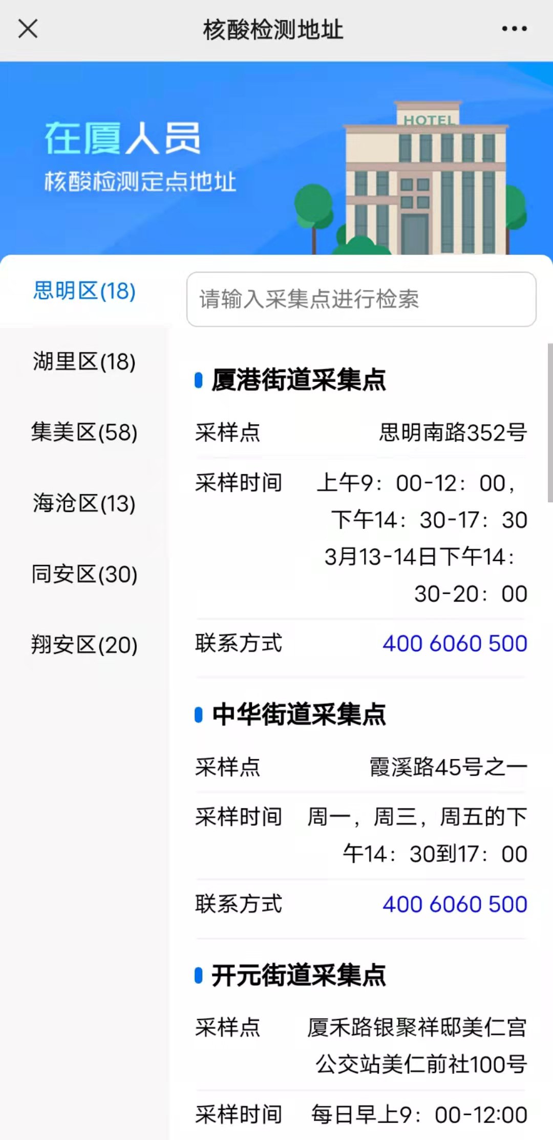 5、也可以查找廈門市內(nèi)的各個(gè)新冠病毒核酸檢測(cè)機(jī)構(gòu)
