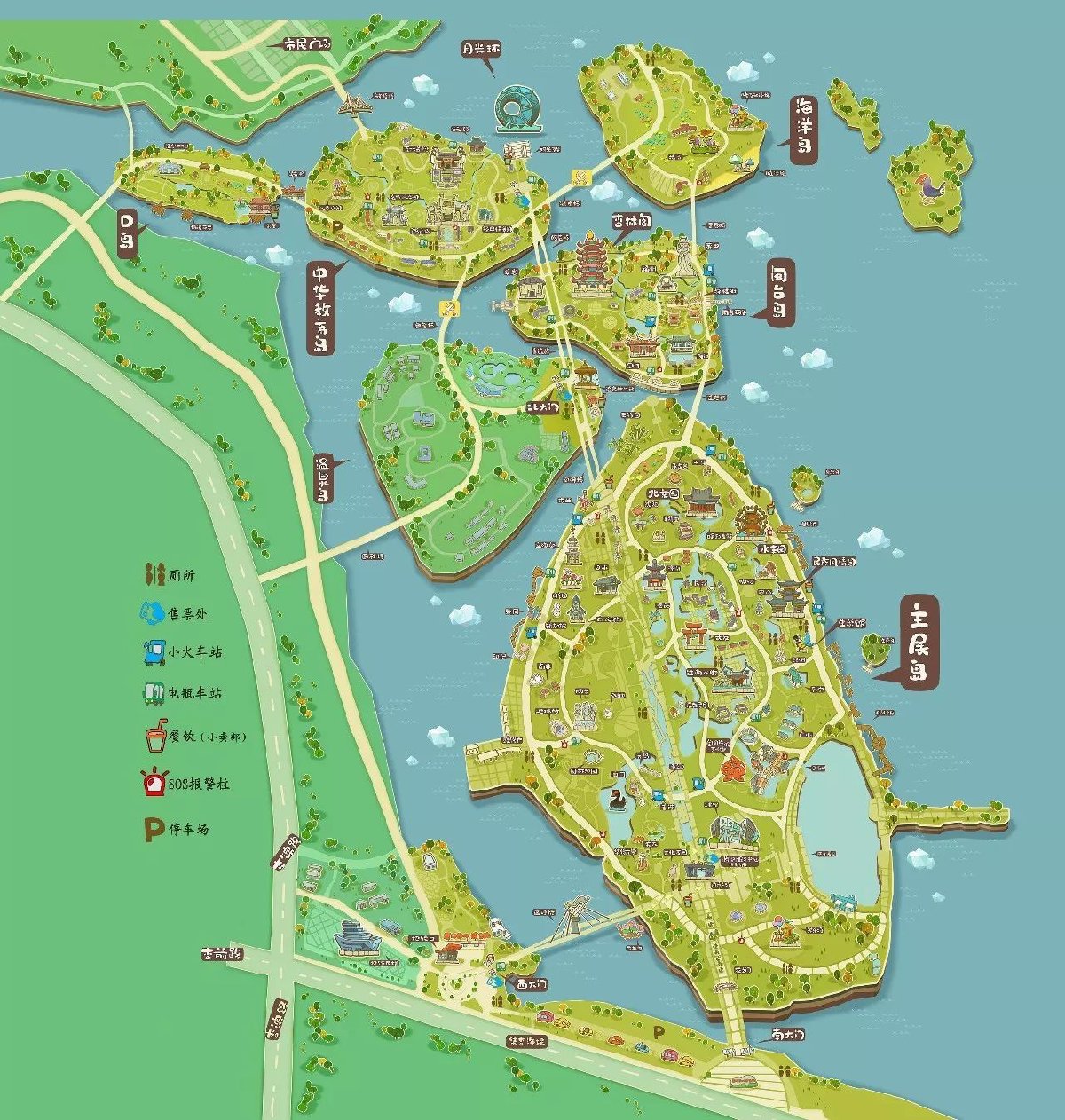 以園博苑全景為視角的手繪地圖(推薦獎打卡地點)