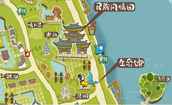 主展島的東半島民族風情園綠樹成蔭,風光秀麗,美不勝收。同時還能欣賞到風格迥異、富有鮮明民族特色的建筑藝術。