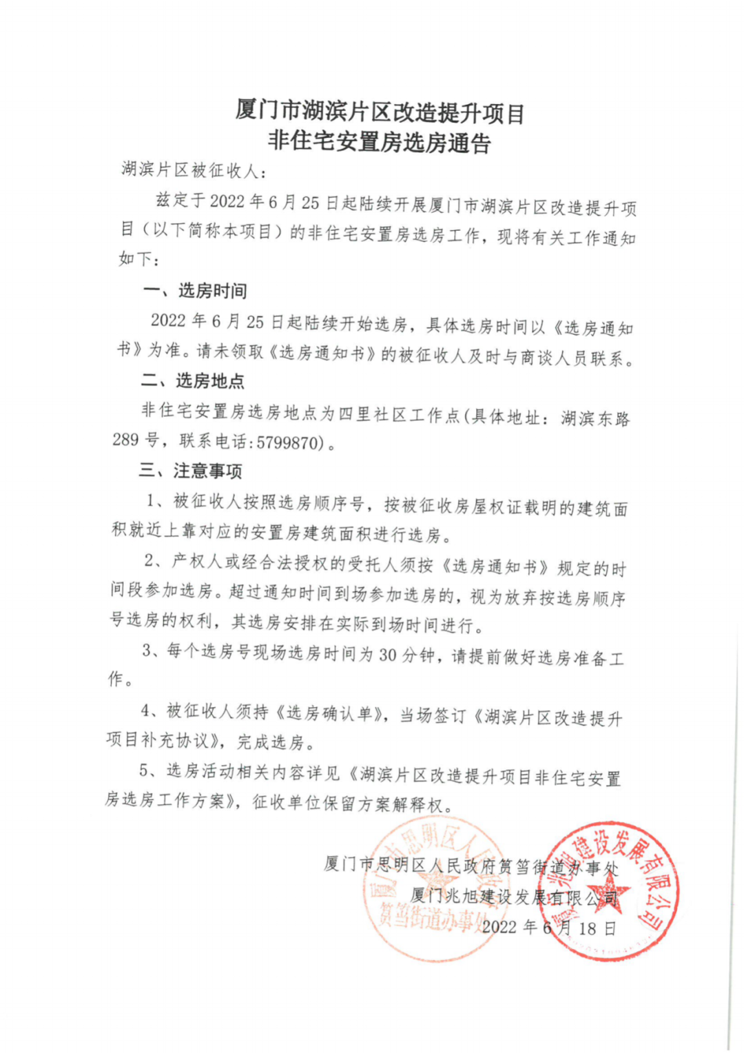 湖濱片區(qū)非住宅被征收人如有其他疑問可撥打咨詢電話:0592-5799870感謝您的支持和配合!