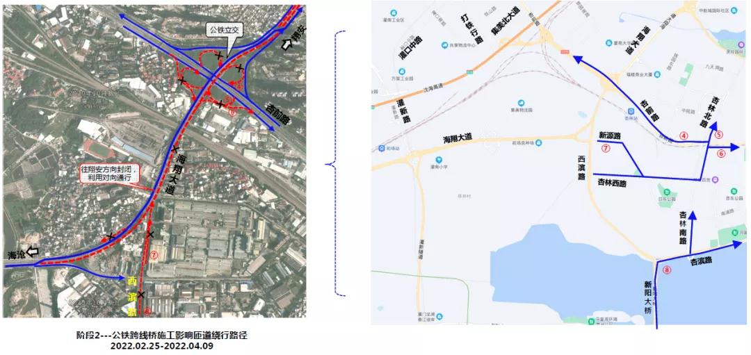 2022年1月9日至3月9日,海翔大道濱海西大道立交至濱海東大道立交(含同安大橋)機(jī)動(dòng)車實(shí)行由西往東單向行駛(由海滄往翔安方向),禁止機(jī)動(dòng)車由東往西(由翔安往海滄方向)通行,立交范圍內(nèi)相關(guān)匝道同步封閉,受限機(jī)動(dòng)車請(qǐng)繞行沈海高速、民安大道和翔安北路等周邊道路。