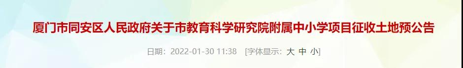 為實施同安區(qū)國民經(jīng)濟和社會發(fā)展規(guī)劃、土地利用總體規(guī)劃和城鄉(xiāng)規(guī)劃,根據(jù)《中華人民共和國土地管理法》《中華人民共和國土地管理法實施條例》《廈門市人民政府辦公廳關(guān)于印發(fā)集體土地征收與補償若干規(guī)定的通知》《廈門市土地征收工作程序暫行規(guī)定》等有關(guān)規(guī)定,現(xiàn)發(fā)布市教育科學研究院附屬中小學項目征收土地預(yù)公告: