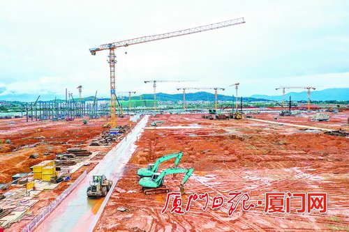 項目位于同翔高新城洪塘片區(qū),目前在建的項目(一期)總投資70億元,總建筑面積約71萬平方米,擬建設新型鋰離子電池基地。這是寧德時代控股的集生產(chǎn)、銷售、結(jié)算等功能于一體的國內(nèi)集團總部,也是落戶廈門的又一百億量級工業(yè)項目。(記者 張奇輝 攝)