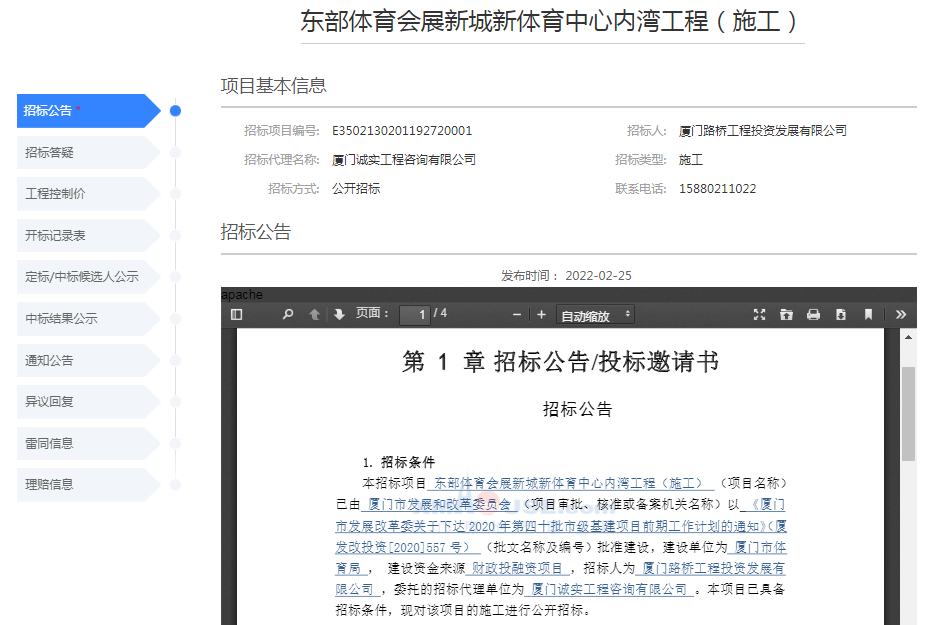 近日,東部體育會(huì)展新城新體育中心內(nèi)灣工程(施工)招標(biāo)公告發(fā)布。