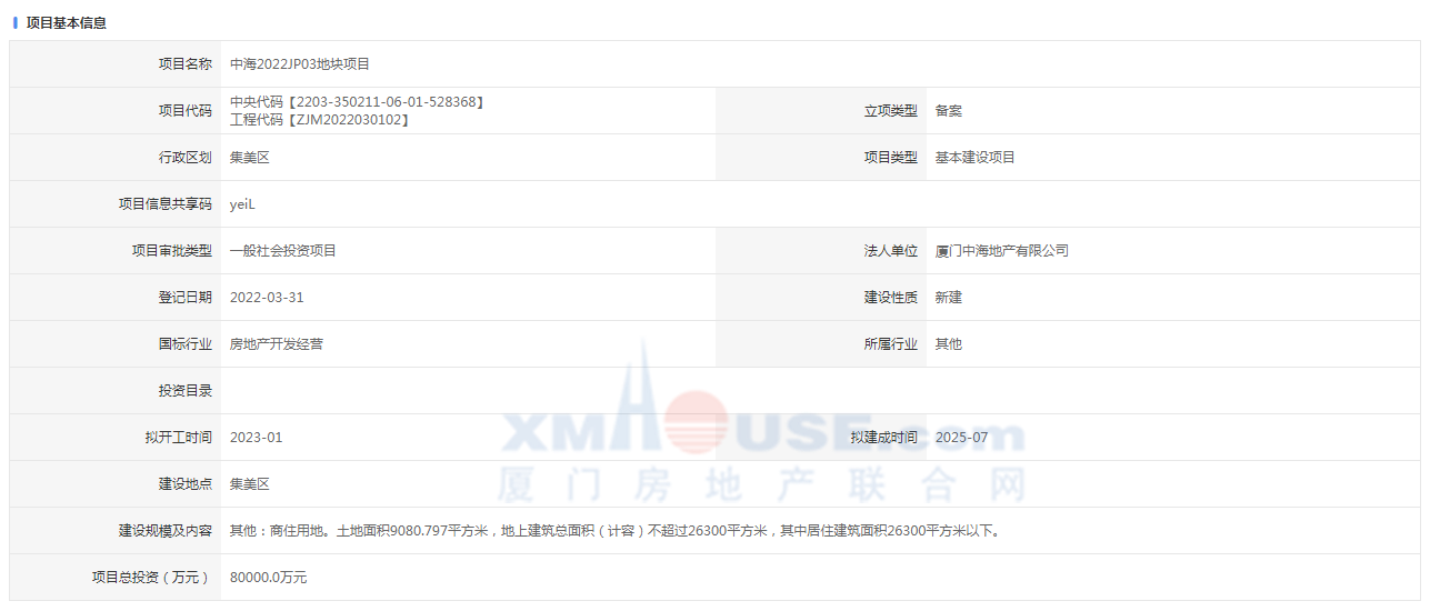 近日,中海2022JP03地塊項(xiàng)目報(bào)建信息公布。