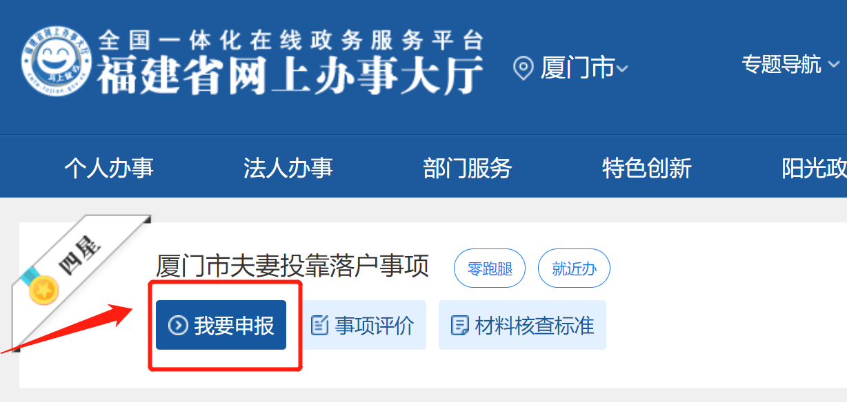 廈門市夫妻投靠落戶事項(xiàng)(網(wǎng)上辦)