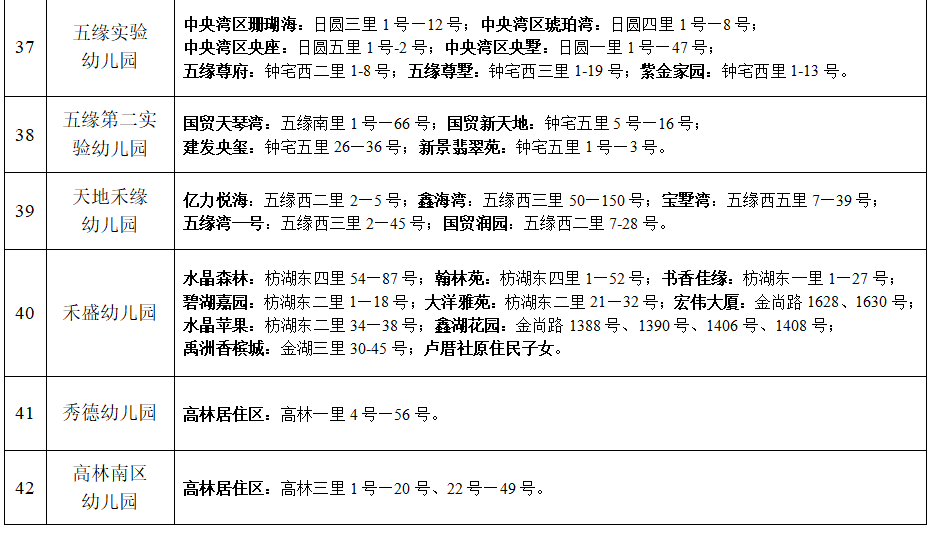 2.秀德幼兒園、高林南區(qū)幼兒園、高林南區(qū)東宅分園、馬垅陽光幼兒園、蔡塘幼兒園、后埔幼兒園、鐘宅民族幼兒園、后坑幼兒園、港務(wù)幼兒園、天地幼兒園(枋湖)、天地興隆幼兒園、華榮梅沙幼兒園、國貿(mào)殿前幼兒園、國貿(mào)優(yōu)才實驗幼兒園等14所幼兒園在確保完成片區(qū)招生任務(wù)且班生數(shù)有余額的情況下,可優(yōu)先招收片外本市戶籍的適齡幼兒,具體要求詳見各園招生通告。