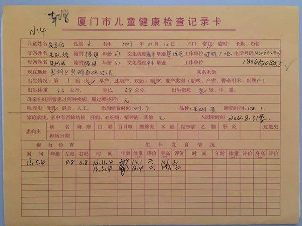 2、“健康卡”到底是什么,很多家長(zhǎng)就是不明白。大致情況是這樣,健康卡的全稱是:廈門市兒童健康檢查記錄卡,是孩子出生40天后到社區(qū)醫(yī)院(婦幼)體檢建的檔,此次要去固定體檢的機(jī)構(gòu)(社區(qū)醫(yī)院或者婦幼)領(lǐng)取其中的黃卡,交給幼兒園。不過(guò),如果沒(méi)有,也不要緊,只要在這次入園檢查時(shí),請(qǐng)醫(yī)生建檔(具體手續(xù)咨詢醫(yī)院),拿出黃卡就可以。