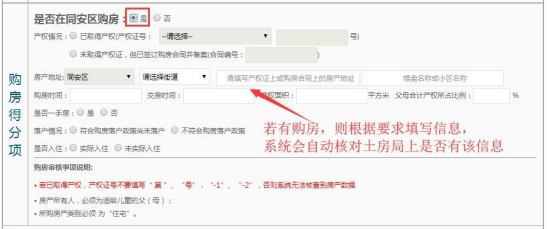 如果在“本區(qū)購房”中選擇“是”,則需要填寫實(shí)際的房產(chǎn)信息。并認(rèn)真閱讀填寫須知。