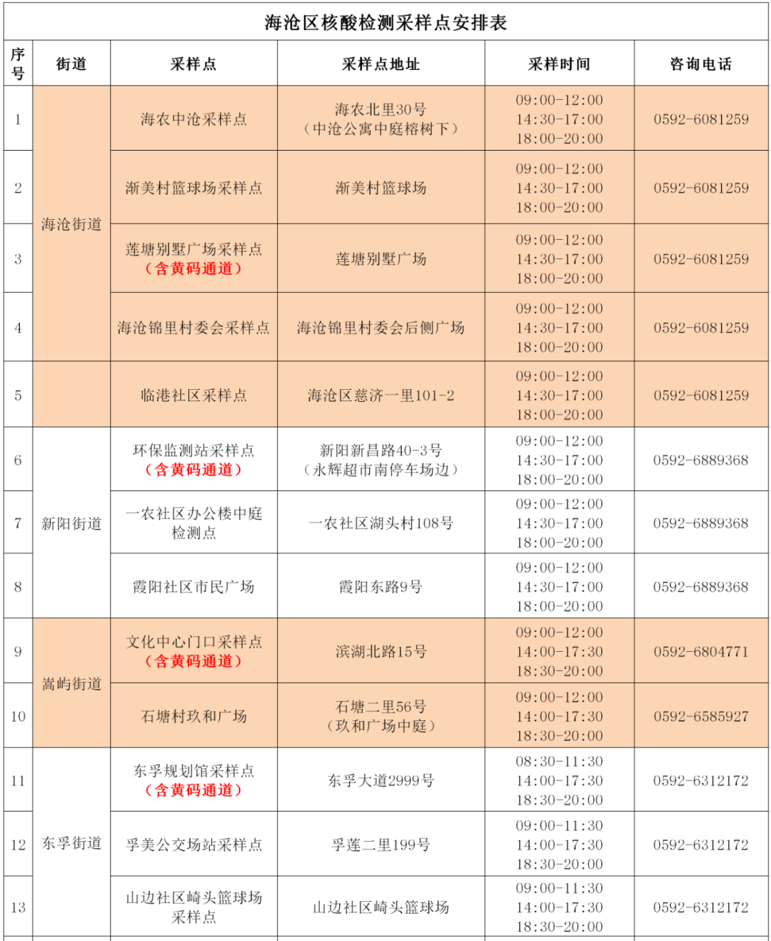 海滄區(qū)采樣點服務(wù)時間統(tǒng)一延長至20時。