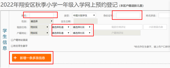 3.如果您的孩子是多胞胎,點擊“新增一條多孩信息”,然后填寫信息。