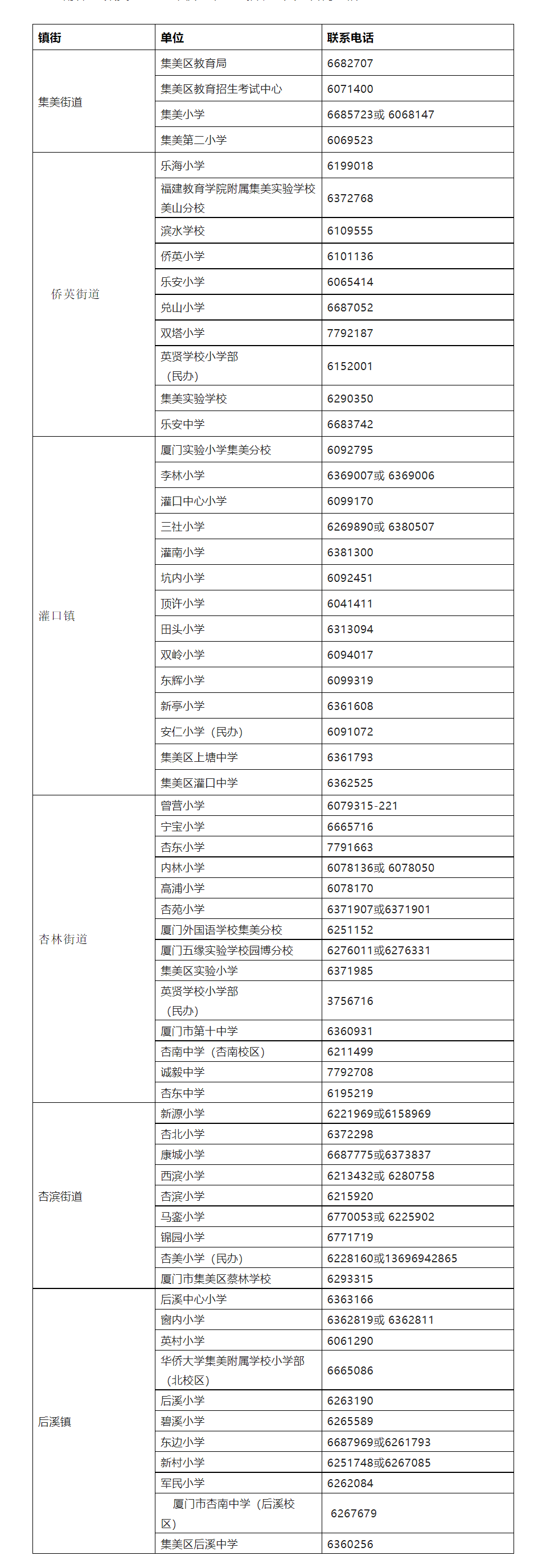 集美區(qū)2022年秋季中小學(xué)插班生入學(xué)咨詢電話
