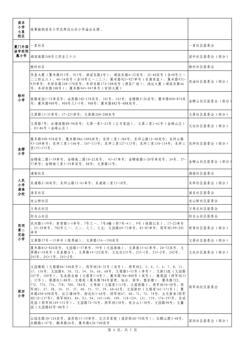 【積分】:廈門積分入學細則 | 【劃片】:小學劃片+對應初中 | |