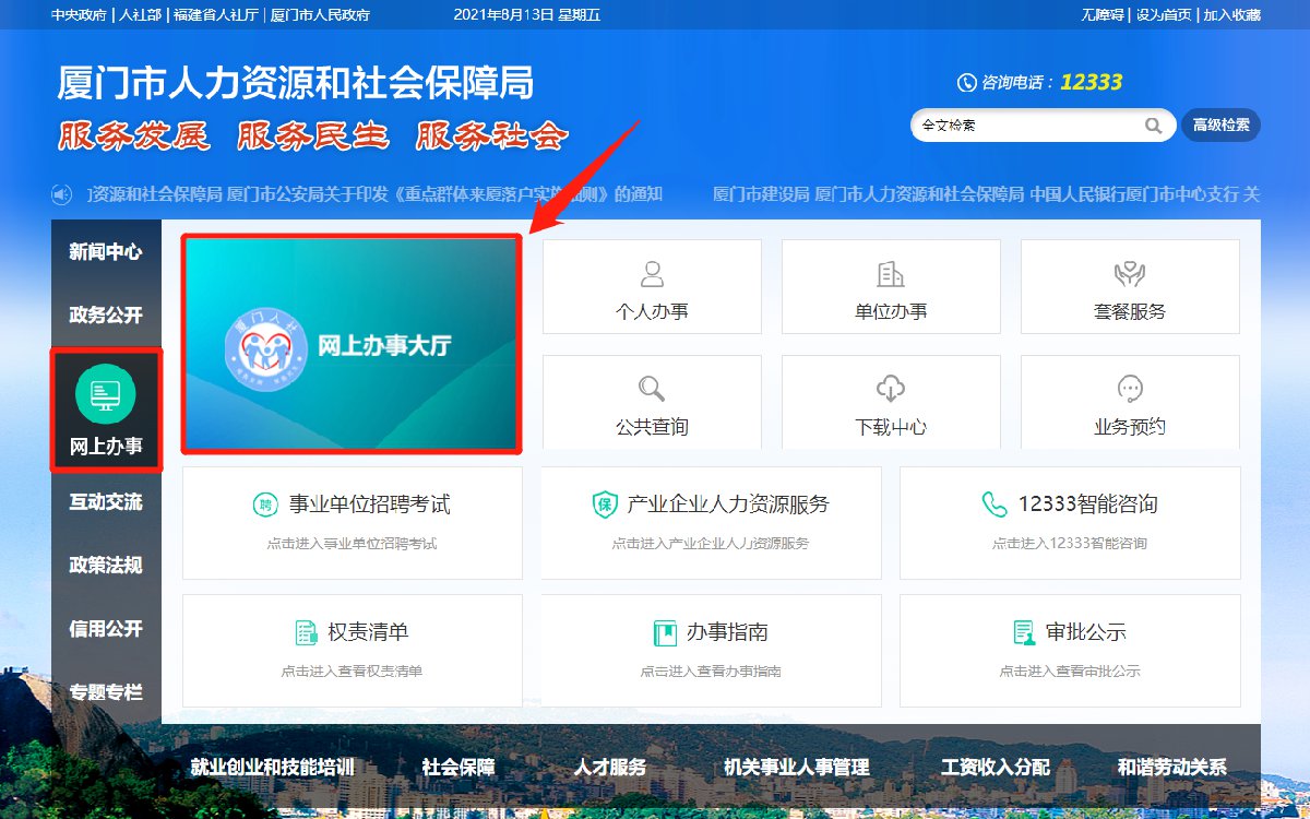 登錄廈門市人力資源和社會保障局官方網(wǎng)站,選擇“網(wǎng)上辦事”中的“網(wǎng)上辦事大廳”,填寫賬號和密碼,登錄后選擇個人辦事欄目中的“社保信息查詢”中的“社保繳費信息”,即可查詢個人城鄉(xiāng)醫(yī)保繳費情況。具體操作步驟如下: