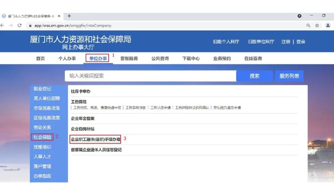 網(wǎng)上辦理:廈門人社官網(wǎng)